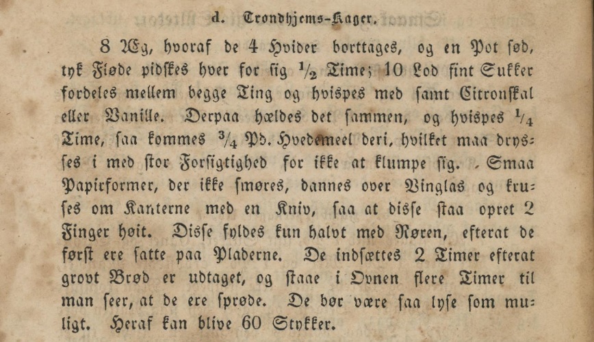 Winsnes sine Trondhjemskaker er småkaker som minner om tørt sukkerbrød. Man skulle tro de hadde mer smak, siden de primært består av egg og fløte. Det har de ikke. Dette er visst en subtil småkake, men toppa med en god slump bringebærsyltetøy gjorde de seg godt til te.