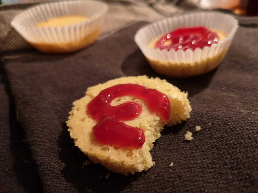 Så lagt så godt. Steketemperaturen – «to timer etter at grovd brød er udtaget» tilsvarer marengs, altså ca 120 grader. Dessverre stekte jeg først mine kaker på 85 grader, fordi jeg surra med temperaturene – det kan jeg fortelle at ikke fungerer. Men resultatet av denne forvirringa er at jeg ikke har noen steketid.